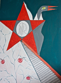Das ist meine Malerei. Jedes Bild hat eine tiefe Bedeutung und ich nenne mein Stil als "grafischer Simbolismus in der Malerei".